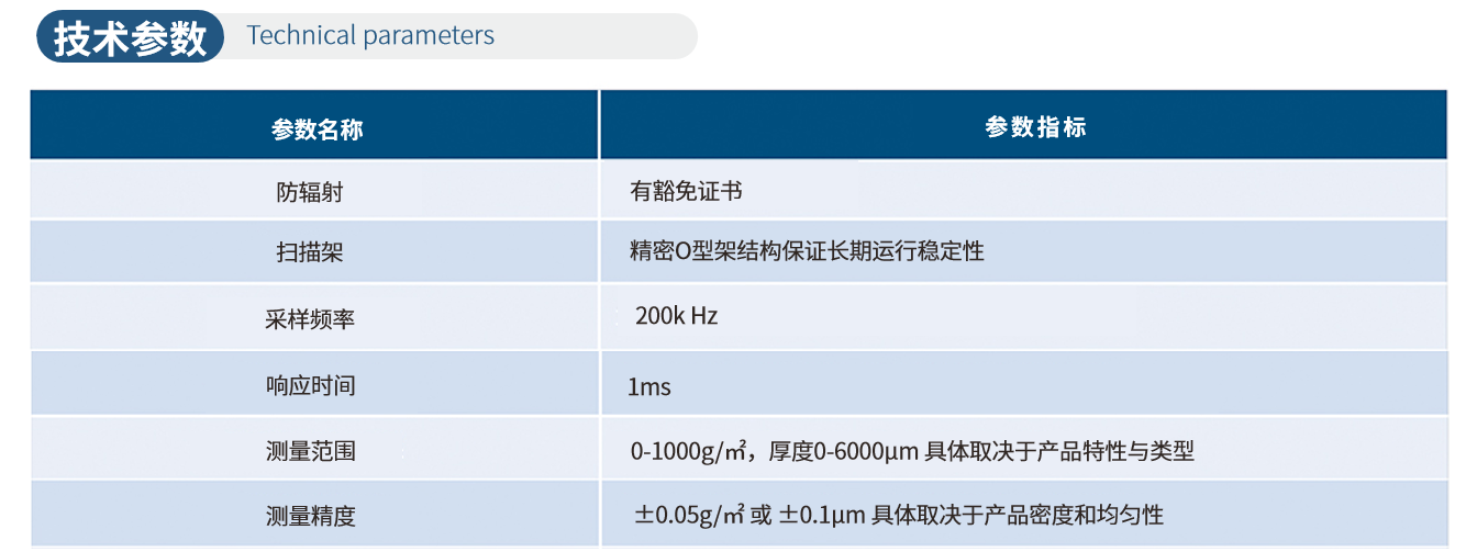 用于薄膜、薄板、片材、人造革、橡胶板、铝箔、铜箔、钢带、无纺布、涂布浸渍类等产品厚度或克重检测。