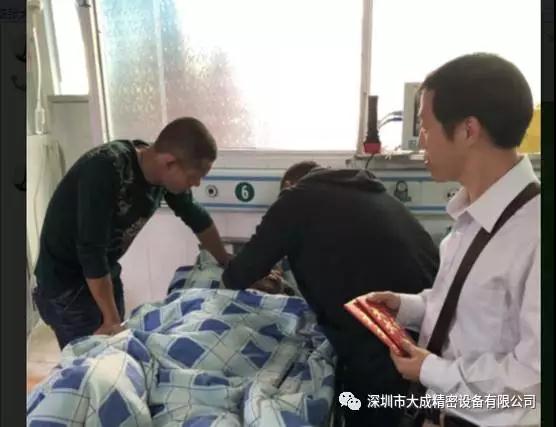 10月21日,职工代表大会主席艾斌与厂长杨涛代表大成公司及职工代表大会,乘车前往乐昌医院,经过350公里的路途,带着公司的援助及慰问,看望大成员工龚衍明病重的父亲。