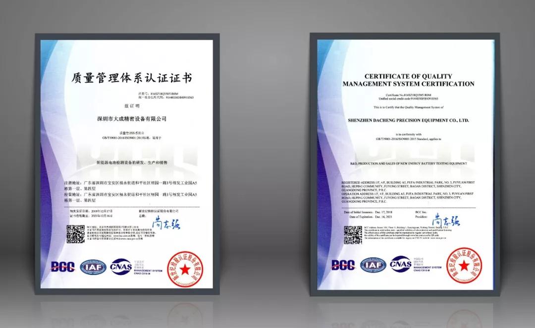 近日,北京新世纪检验认证公司对大成精密进行了ISO9001:2015质量管理体系换证审核。经过2天的严格审核,审核专家一致通过大成精密继续保持认证注册的资格,并换发ISO9001:2015质量管理体系证书。
