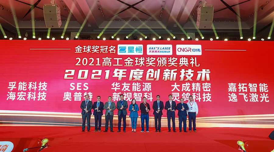 12月21-23日,2021高工锂电年会以“新周期、大时代”为主题在深圳前海华侨城JW万豪酒店举行。来自电池、材料、装备、整车等产业链上下游超2000家企业领袖高层共同参与了此次活动,并对“2021年度高工金球奖”进行颁发。大成精密获评“2021年度创新技术”荣誉,大成集团董事长张孝平等人受邀出席了此次活动。