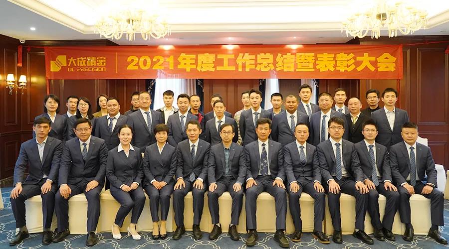 致敬来时路,奋斗正当时。大成精密2021年终总结会议暨表彰大会于2022年1月14日召开,受疫情影响,本次会议以线下及线上视频形式同时展开。集团董事长、公司高层、员工代表共80余人出席了本次会议,进行全面总结2021年工作完成情况,擎画2022年度发展蓝图,同时对2021年度工作中表现优异的员工进行表彰奖励。