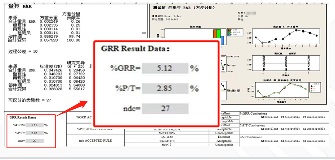 60米/分钟扫描速度%GRR 5.12%、%P/T 2.85%。
