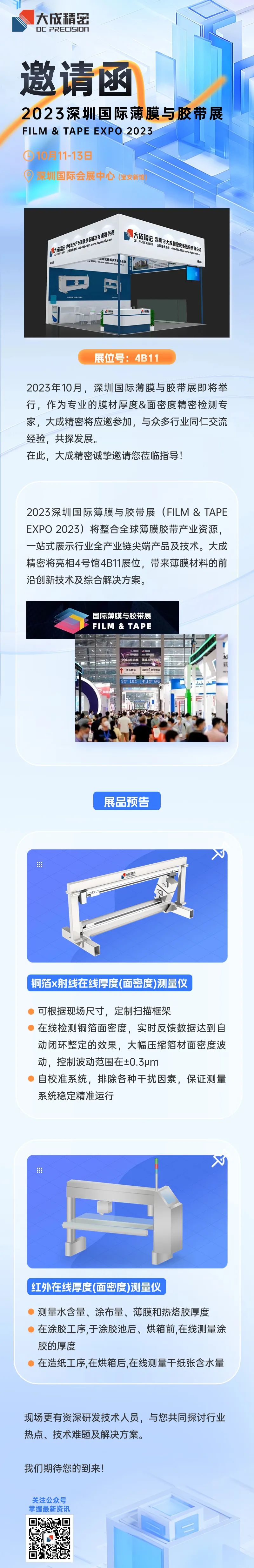 展会邀请——2023深圳国际薄膜与胶带展,大成精密诚邀您的莅临!