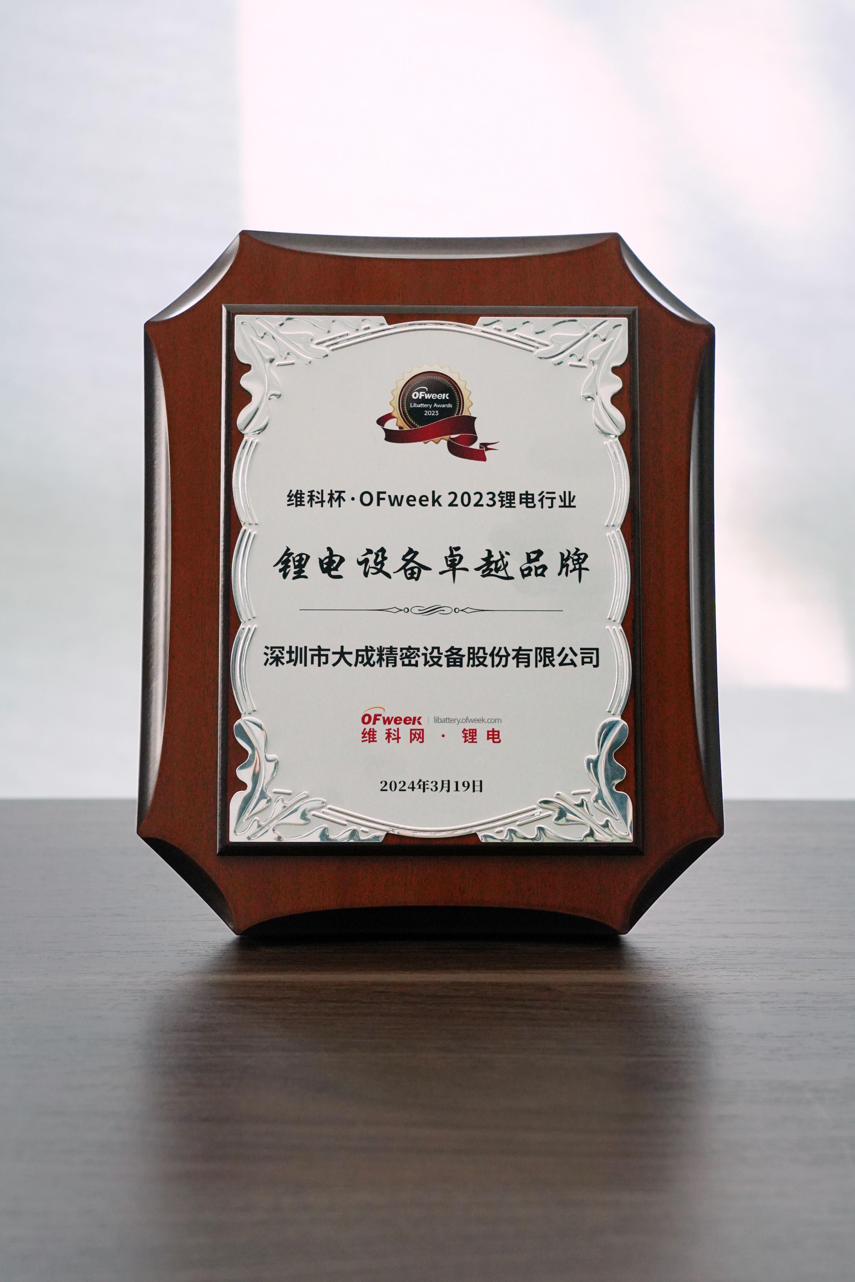 3月19日,由高科技行业综合门户维科网主办的维科杯·OFweek 2023锂电行业年度评选颁奖典礼在深圳盛大开幕,凭借着在锂电领域的亮眼表现和品牌影响力,大成精密在众多优秀品牌中脱颖而出,荣获维科杯·OFweek 2023 锂电设备卓越品牌。