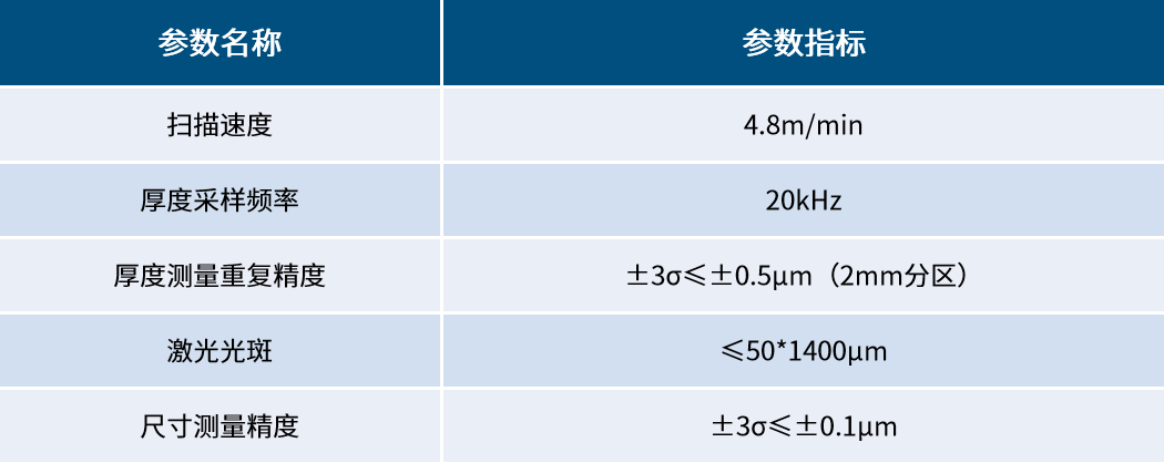 该设备应用于锂电池涂布工序或辊压工序以及其它工序的极片厚度与尺寸的检测,提高了涂布工序首、尾件测量的效率与一致性。给极片品质管控提供了可靠便捷的方法