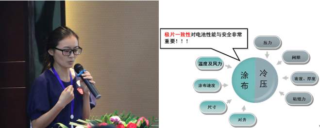 大成精密自成立以来,始终保持不断地学习与变革的能力。公司与清华大学及世界一流实验室强强合作,为产品技术创新与突破带来了源源不断的动力支持。清华大学研究生院张玢博士、罗丹博士后出席了本次会议。张玢博士为大家分享了锂离子电池材料体系与安全性的重要课题,并就电池极片一致性对于动力电池性能与安全的影响展开论述。她指出,“涂布工序的面密度一致性和辊压工序的压实密度一致性是直接影响电池性能的关键指标,对锂离子电池的整体性能影响尤为显著。”