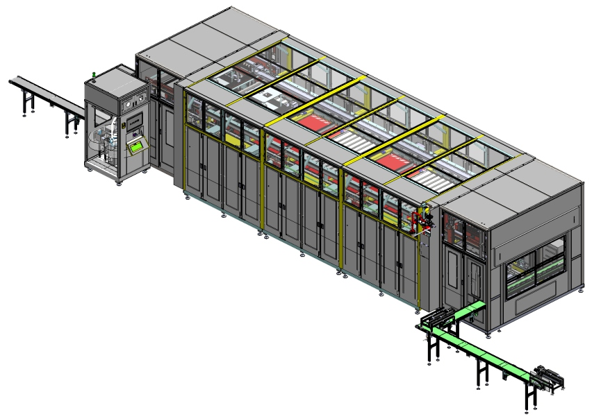 全程自动化生产,机器人扫码采集每块电池数据,建立工艺可追溯系统,每台设备只需配备0.25人。